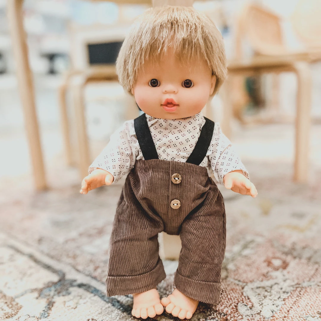 The sweetest baby boy minikane doll. Minikane Dolls are made from eco-friendly and non-toxic vinyl. They are subtly scented with a vanilla scent and are small enough for your little one to hold. Your little one can dress them up with their own baby clothes or choose from the Minikane outfits.