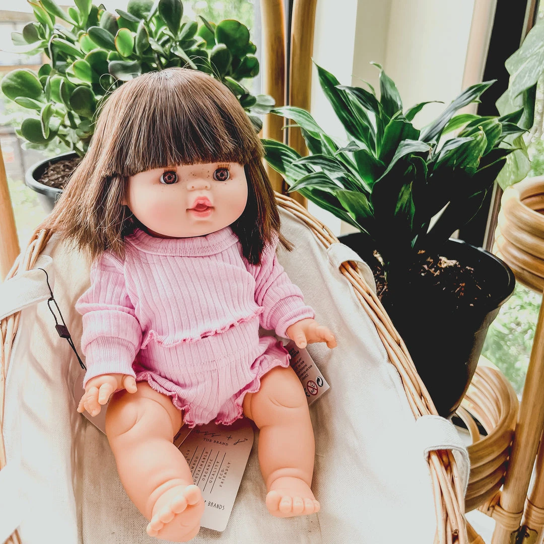 The sweetest baby girl minikane doll. Minikane Dolls are made from eco-friendly and non-toxic vinyl. They are subtly scented with a vanilla scent and are small enough for your little one to hold. Your little one can dress them up with their own baby clothes or choose from the Minikane outfits.