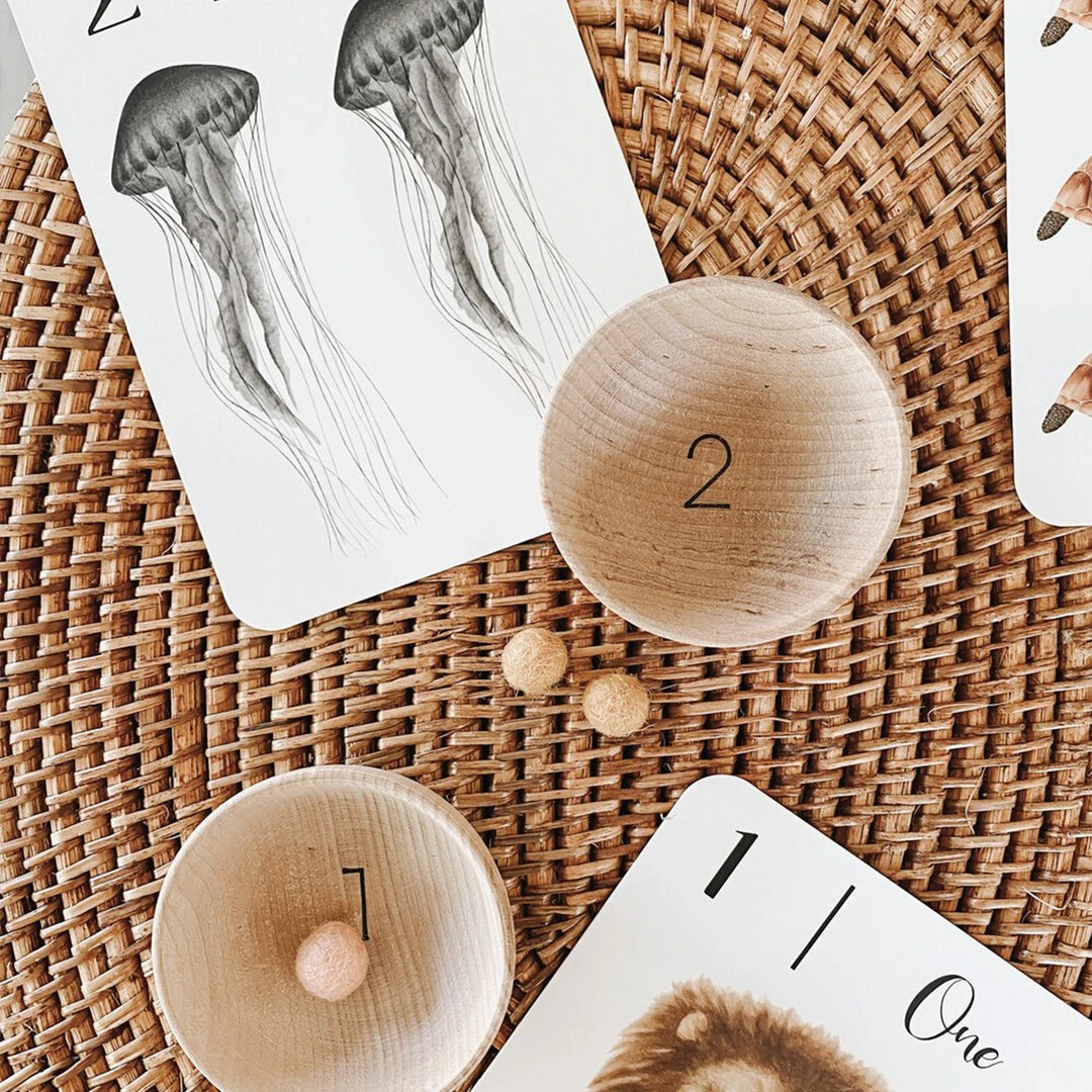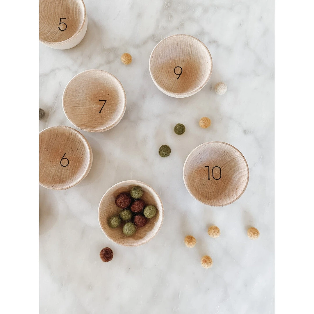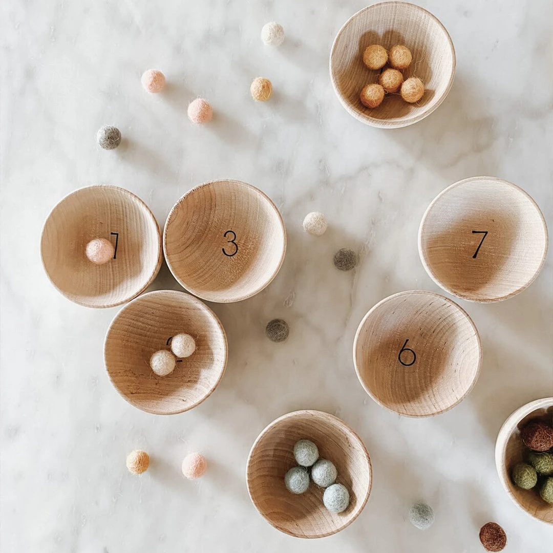 these beautiful wooden bowls + felt balls are so cute and adorable