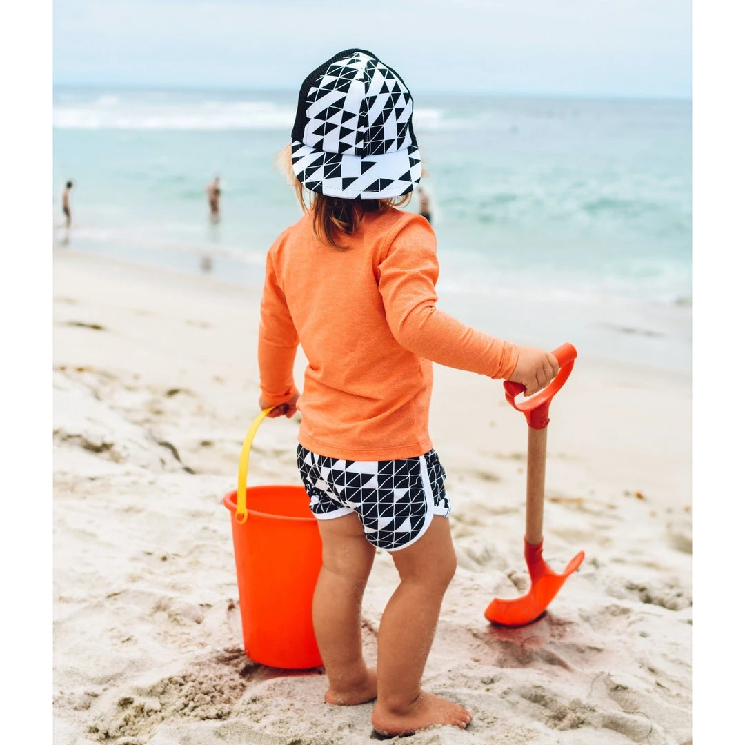 These swim track shorts are here and in our favorite Triangle print! They are perfect for playing, swimming, lounging on the beach, and any other fun outdoor water activity. These shorts are made from a soft lycra/spandex material. Track shorts feature: