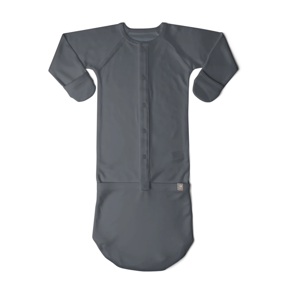 signature integrated mitts with pattern to boost brain development and prevent scratches plus a one-snap foot pocket to quickly change from gown to sleeper (perfect for those 2am diaper changes