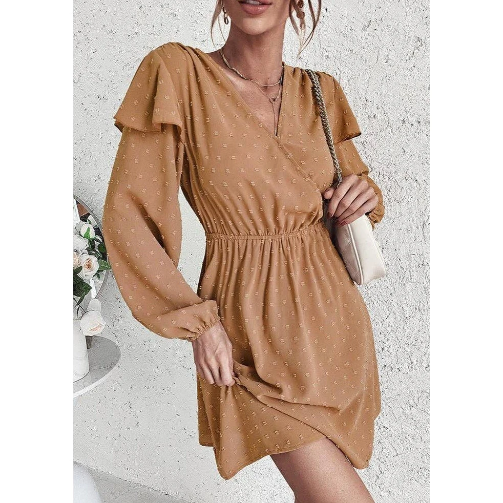 J+j Dresses Beige Surplice Swiss Dot Light Dress