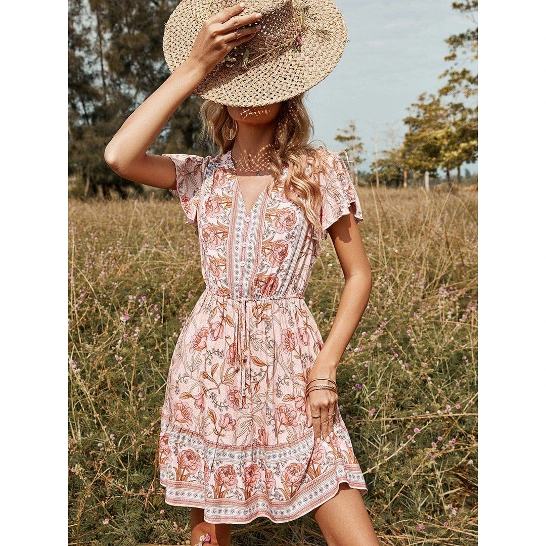 J+j Pink Butterfly Sleeve Boho Dress Dresses