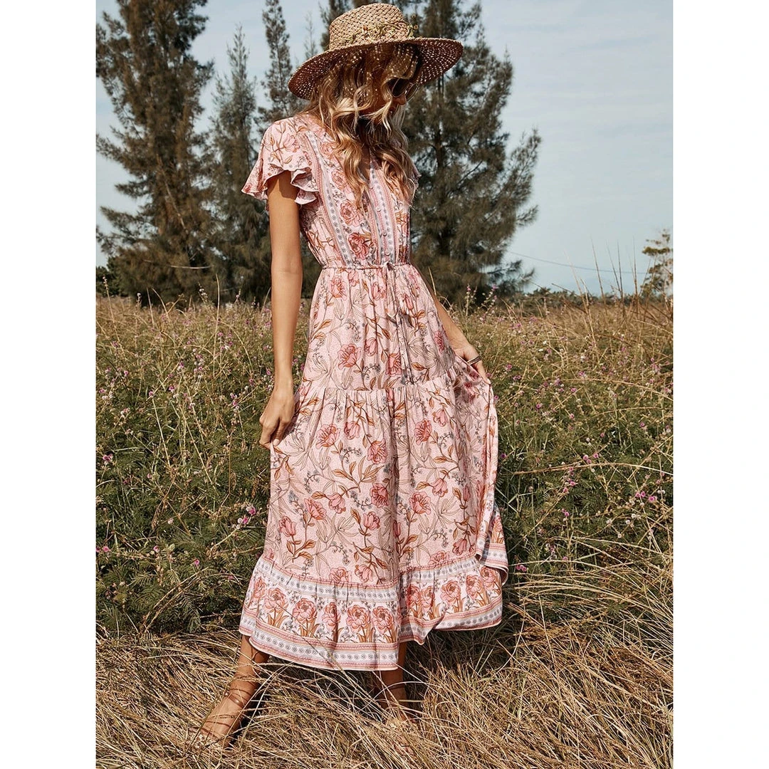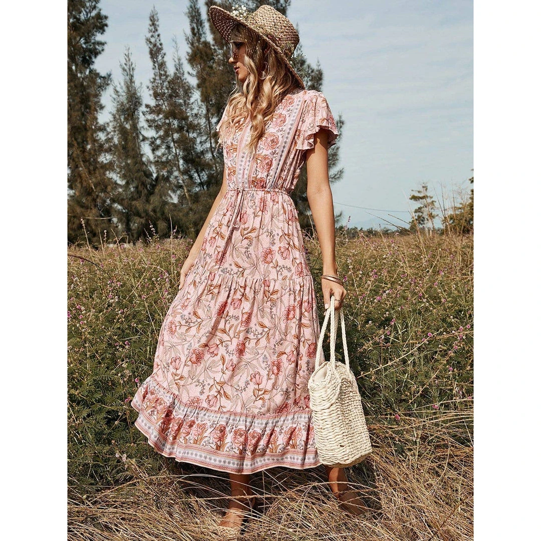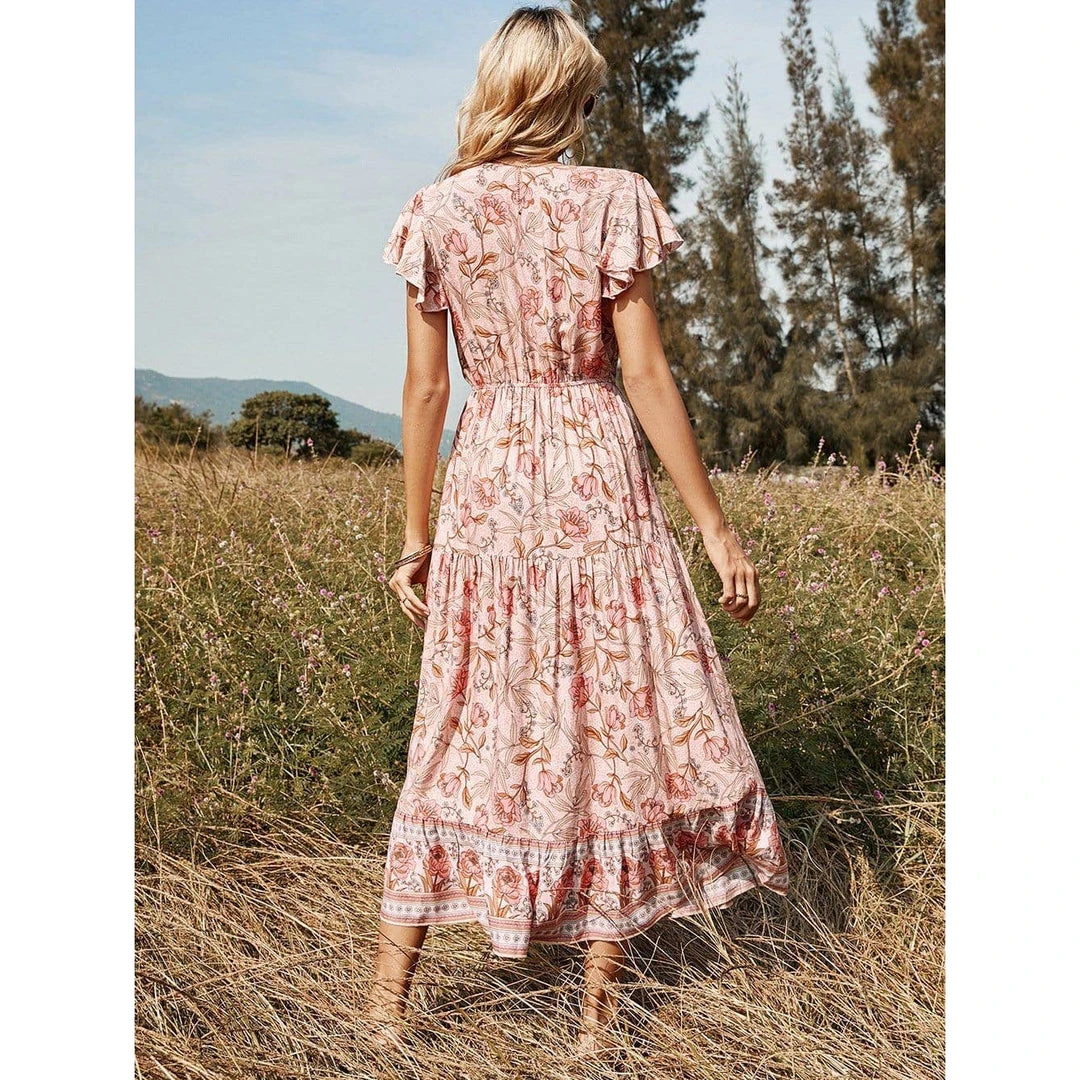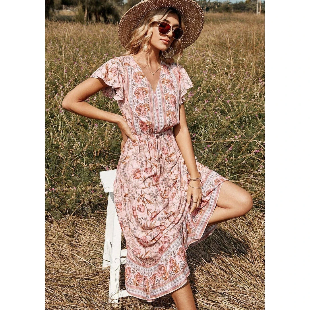 J+j Pink Floral Print Butterfly Sleeve Dress