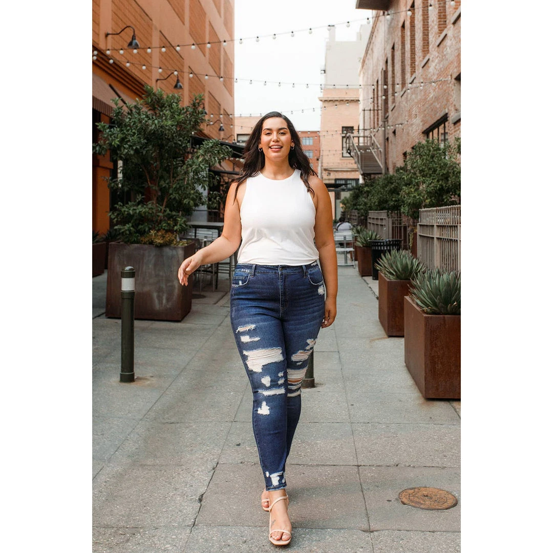 J+j Ripped High Rise Ankle Skinny Jeans Plus Size Jeans + Pants