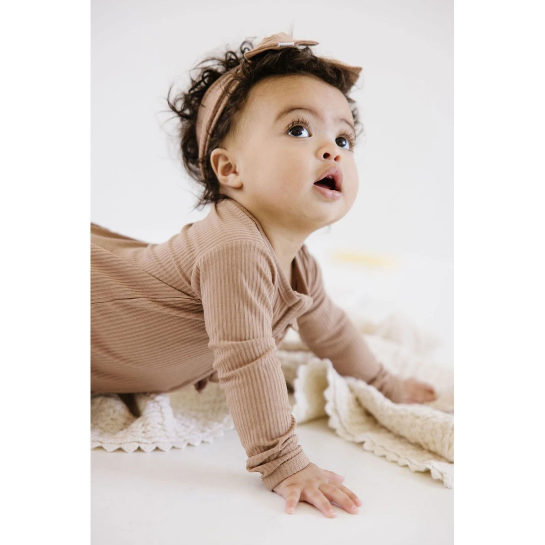 butter soft + stretchy double zipper perfect taupe tan neutral sleeper that you will want your baby to wear all day