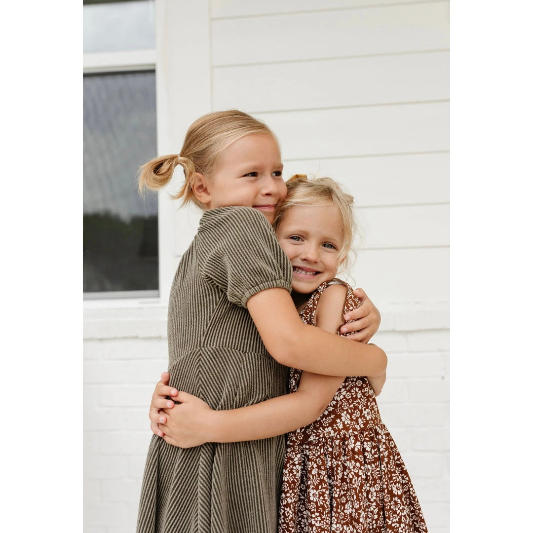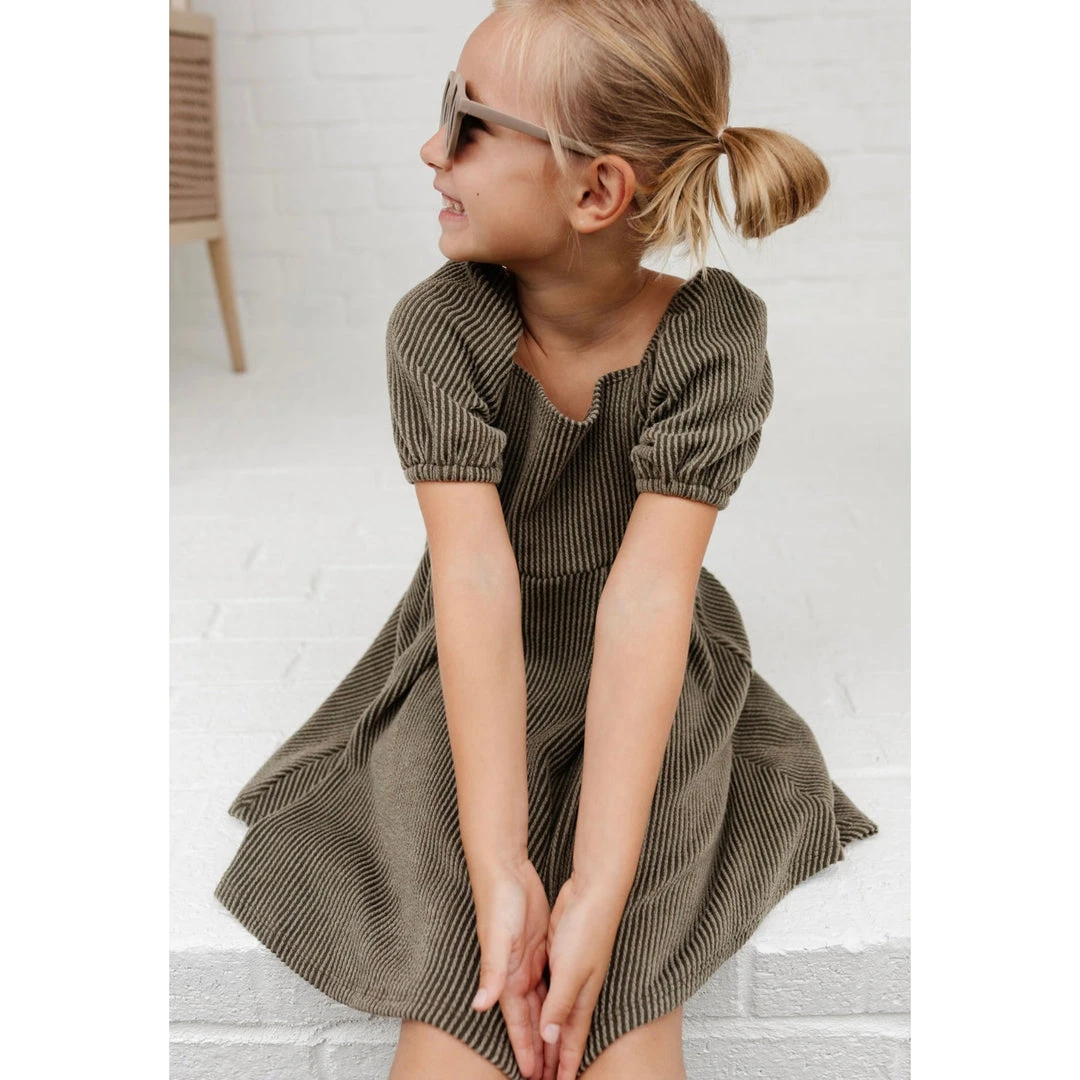 Lia + Lou Olive Green Ribbed Puff Sleeve Dress