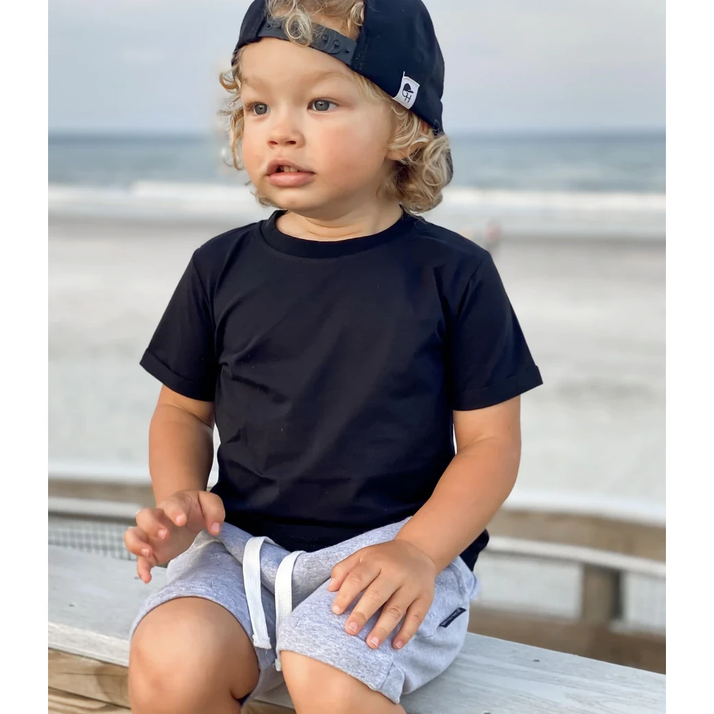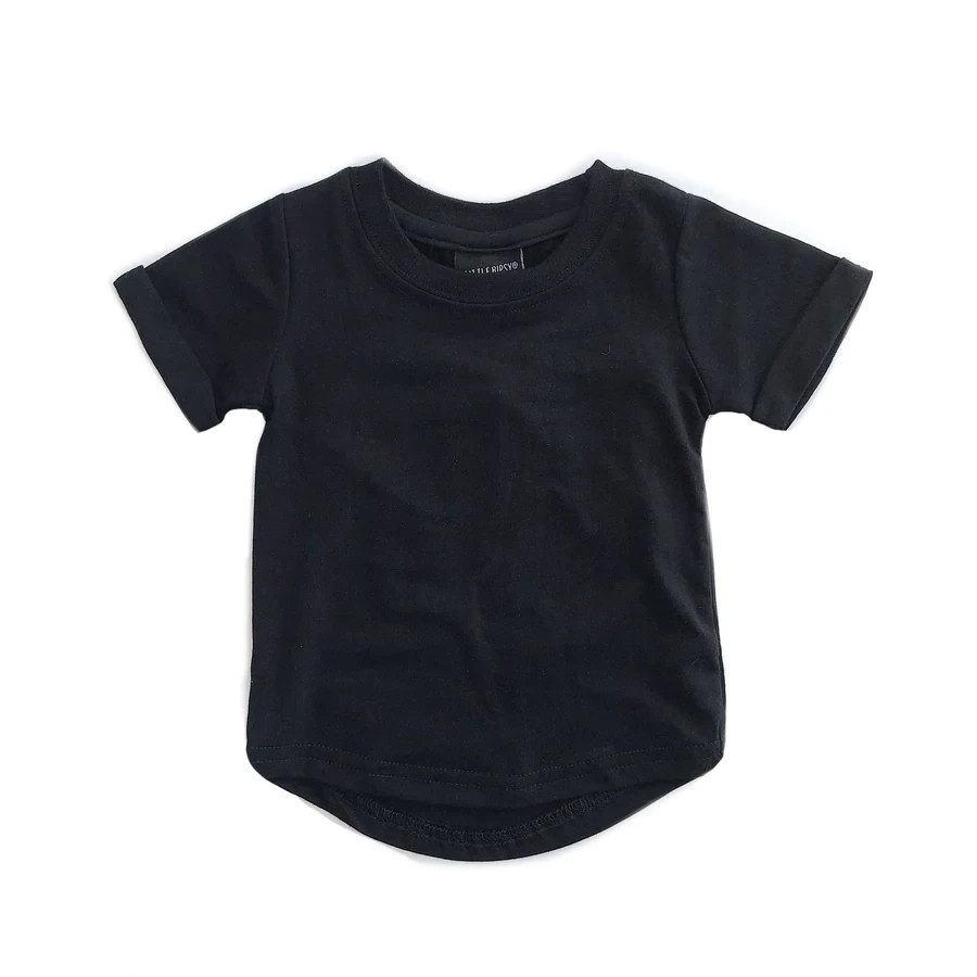 adorable scoop bottom hem solid plain black tee