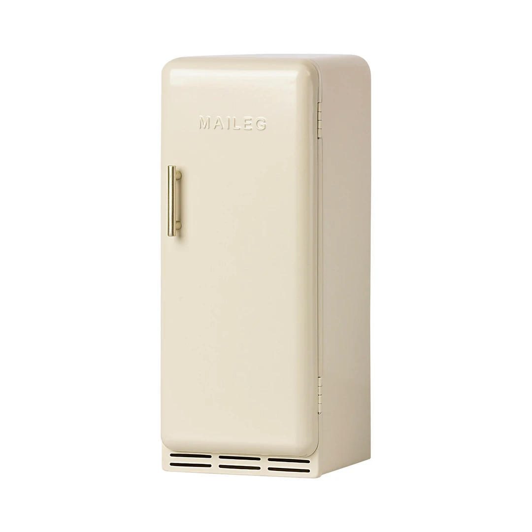 An old fashioned fridge that fits perfectly into the House of Miniature dollhouse. The fridge is made of metal with a magnetic lock and frosted shelves inside. A great addition to this fridge is our Miniature grocery box.