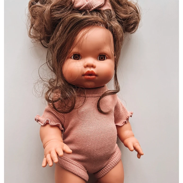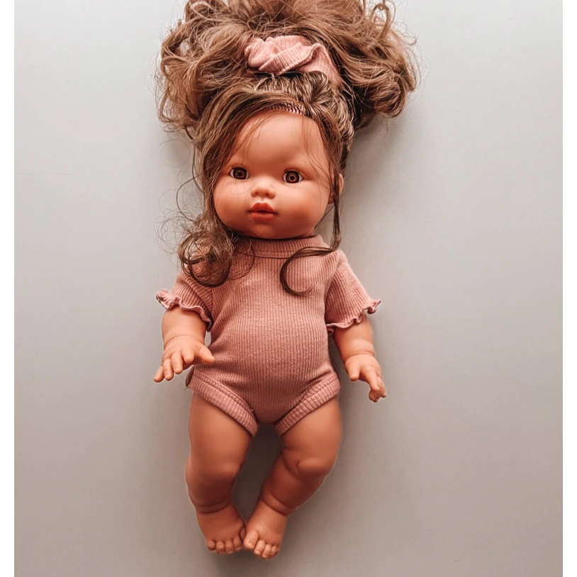 Dolls + Plushies Beige Tank Ribbed + Button Romper Minikane Clothing