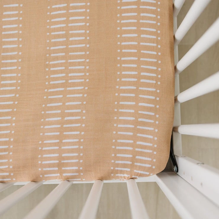 Sahara Crib Sheets are made with an exclusive designed fabric. It is soft, breathable, easy to wash and to put on and off the crib mattress. They fit the standard crib size of 52 x 28.