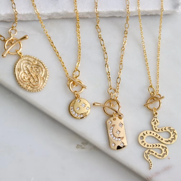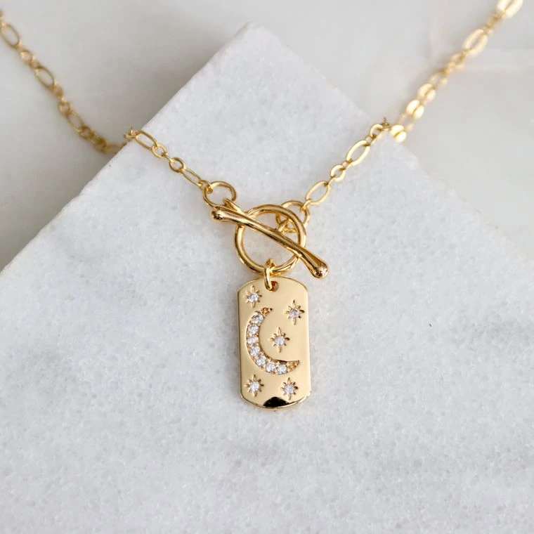 beautiful moon + stars rectangular toggle necklace