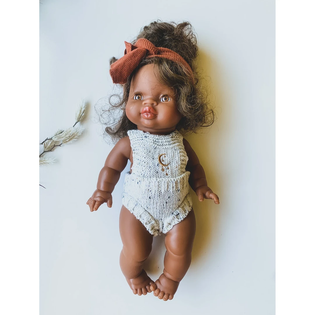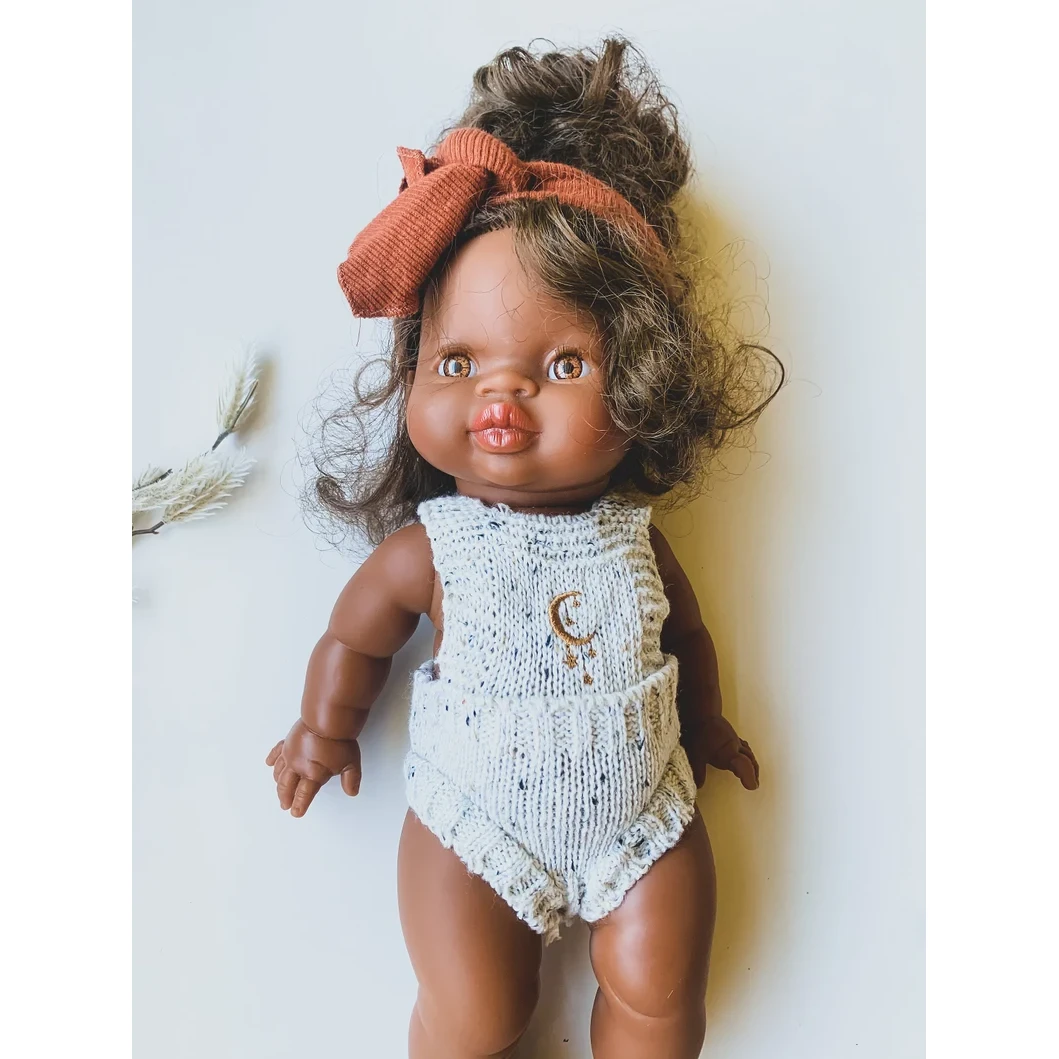 handmade knit moon + star romper minikane doll clothing