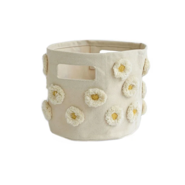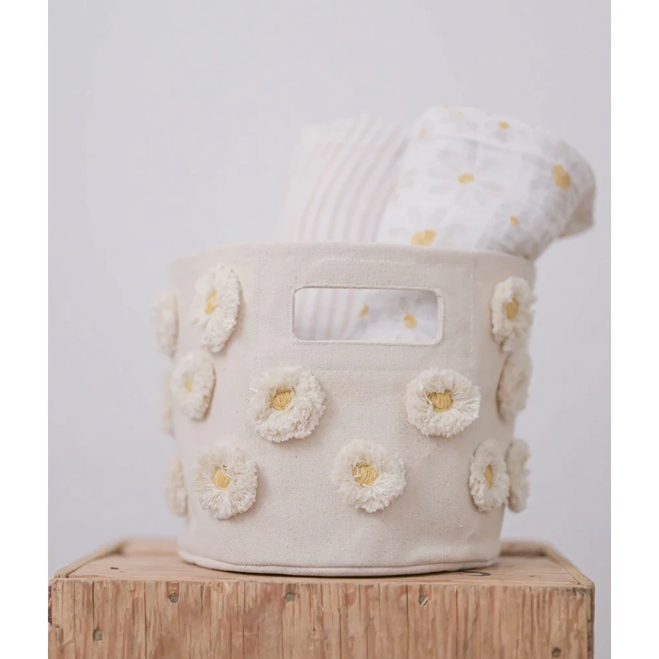 The Daisy Mini is a first of its kind, featuring Pom Pom Daisies with stitched quilted Marigold threaded centers. Mini Storage is the perfect size to store and organize change table essentials, tiny toys and so much more!