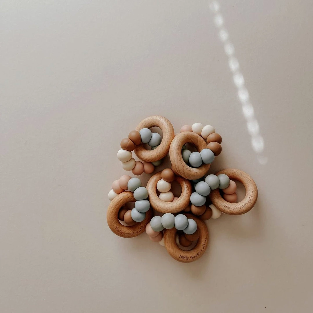 Orbit Teething Rattle are perfect in size and shape for little hands to grasp and, combined with our XL soft silicone beads and natural beechwood bead & rings, makes for the ideal teether to massage sore gums.