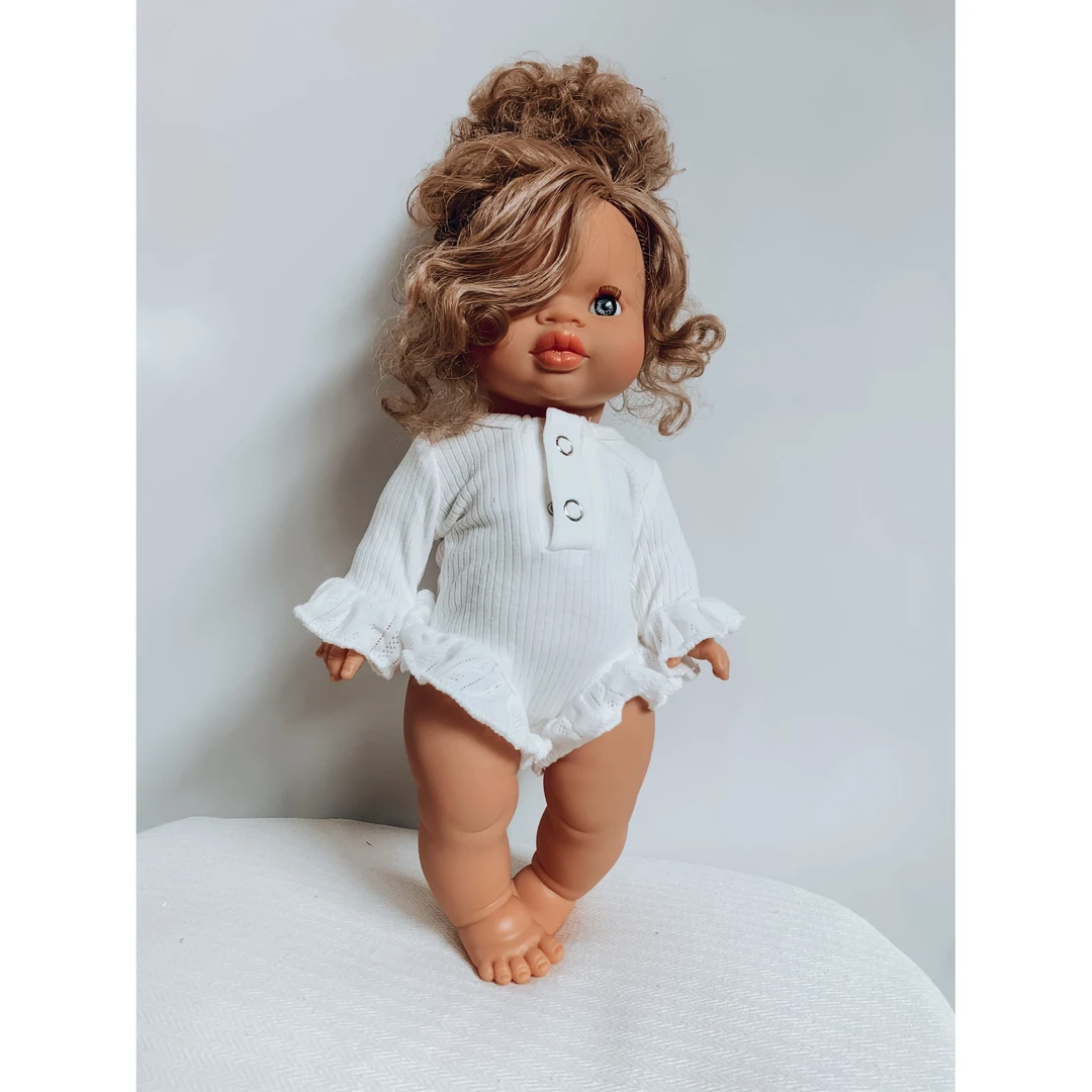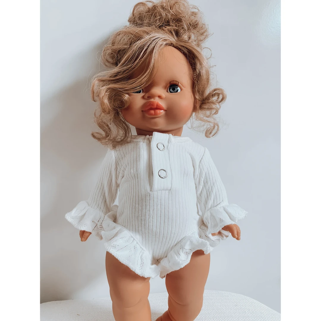 Dolls + Plushies Beige Tank Ribbed + Button Romper Minikane Clothing